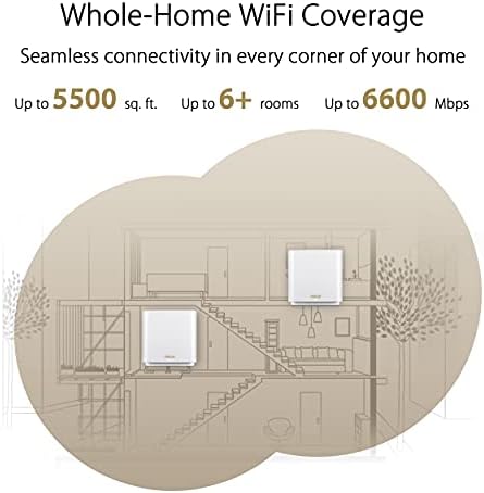 ZenWiFi Whole-Home Tri-Band Mesh WiFi 6E System (ET8 2PK), Coverage up to 5,500 sq.ft & 6+Rooms, 6600Mbps, New 6GHz Band, AiMesh,Instant Guard