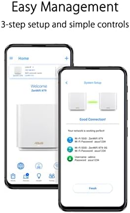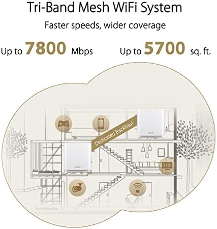 ZenWiFi XT9 AX7800 Tri-Band WiFi6 Mesh WiFiSystem (2Pack), 802.11ax, up to 5700 sq ft & 6+ Rooms, AiMesh, Lifetime Free Internet Security, Parental Controls, 2.5G WAN Port, UNII 4, White