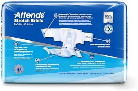 Stretch Adult Incontinence Disposable Briefs, Large/X-Large, 40"-70" Waist with SecureGrip Tab Closure, Ultimate Absorbency with Dry-Lock Containment Core and Breathable Side Panels, 24ct Bag