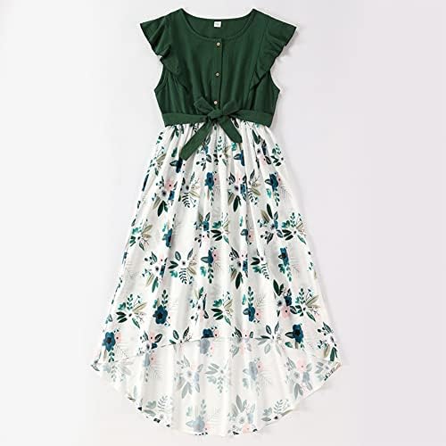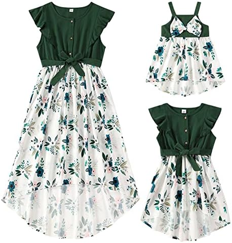 AWIBMK Mommy and Me Matching Dresses Leopard Ruffled Midi Dress Summer Solid Color Stripe Mom Daughter Matching Outfits