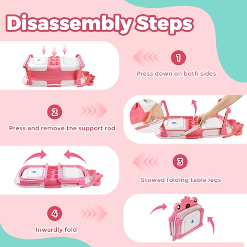 Baby Bathtub,Collapsible Baby Bath Tub with Soft Cushion & Thermometer, Space Saving Foldable & Travel Newborn Bathtub for Infant to Toddler 0-36 Months, Frog Blue