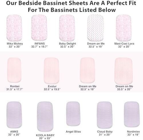 5 Pack Organic Bedside Bassinet Sheets Compatible with Mika Micky, Baby Delight, Dream On Me, AMKE and Other Bassinet Mattress Pads Size Between 17-21 in Width, 29-33 in Length, and 1.5-4 in Thick