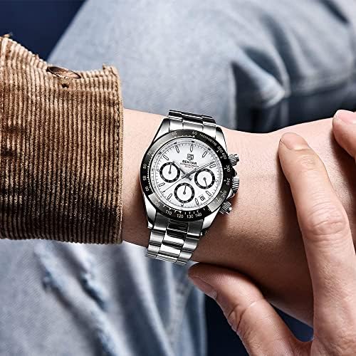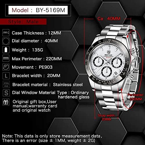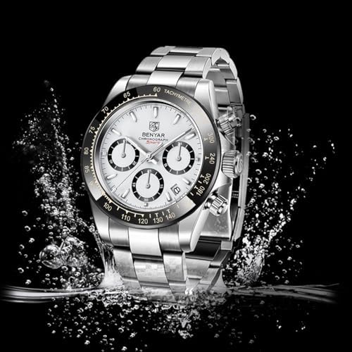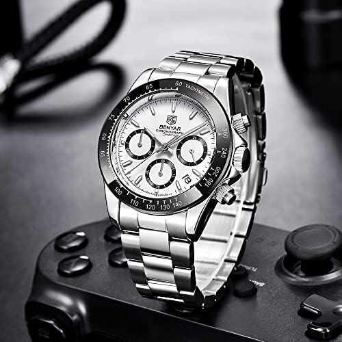 Men's Watch BENYAR Fashion Quartz Movement Wrist Watch Analog Chronograph Business Waterproof and Scratch Resistant Stainless Steel Strap Leisure Sports Watches for Men