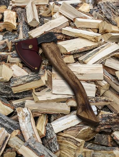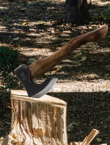 The Berserker - Camping Hatchet - Bushcraft Axe for Wood Chopping Carving- 15.7" Hand Axe with Leather Sheath