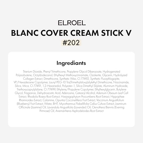 Blanc Cover Cream Stick V White - Korean Color-Changing Foundation Stick with Volufiline - Medium to Full Coverage Dewy Finish Base Makeup - Dual-Ended with Detachable Brush (202 Natural)