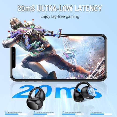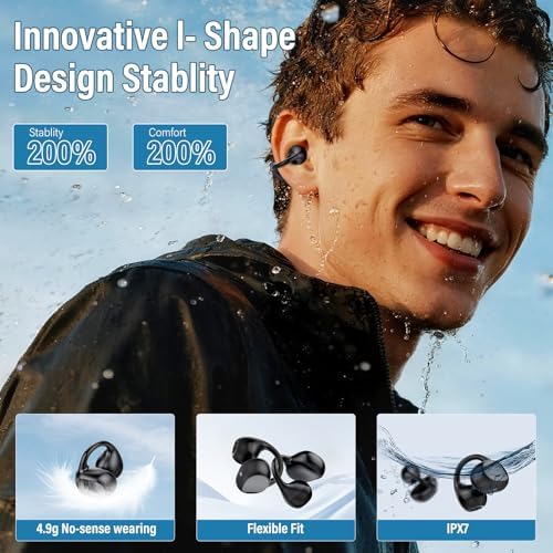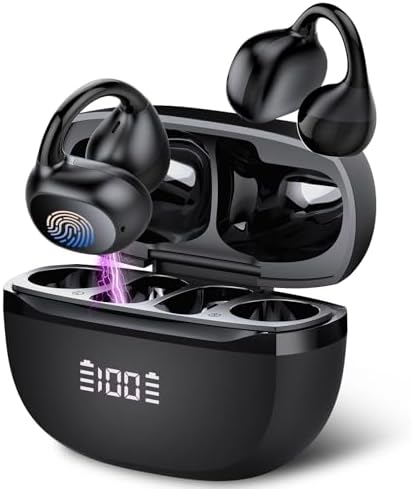 Sponsored Ad - Open Ear Earbuds,Wireless Earbuds Bluetooth 5.4 Ergonomic Clip-On Ear buds, Bone Conduction Over The Ear Headphones 48H Playtime, Perfect Running Headphones for Sports IPX7 Waterproof T