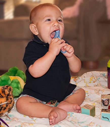 Brilliant Oral Care Baby’s First Toothbrush, Smooth Silicone Bristles Gently Clean Tender Teeth and Gums, for Ages 4+ Months, Blue, 1 Pack