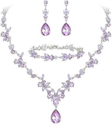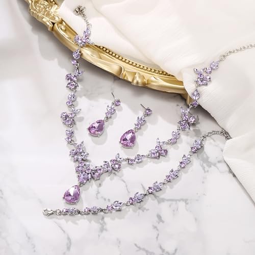 Sponsored Ad - BriLove Wedding Jewelry Set for Women Bride, Y-Necklace Tennis Bracelet Dangle Earrings Crystal Teardrop Marquise Cluster for Bridal Bridesmaid