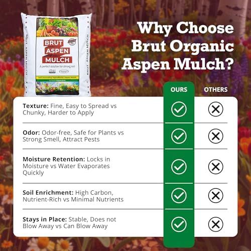 Brut Organic Aspen Mulch – 10 Quarts, Natural Weed Preventer, Water Retainer, Odor-Free – Nutrient-Rich Bark for Plants – Ideal Bark Mulch for Landscaping, Garden Beds & Potted Plants