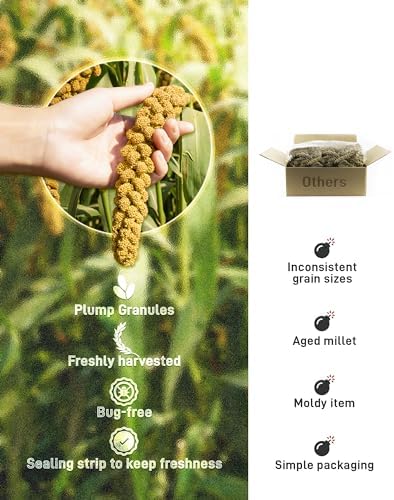 BUCATSTATE 2.2lbs Millet for Birds, Sun-Dried Parakeet Food for Parrot, Budgie, Cockatiel, Finches, Lovebird, GMO-Free Parakeet Treats (2.2lbs)