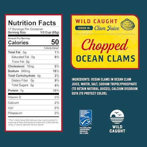 Snow's Ocean Chopped Clams Canned, 51 oz Can - 7g Protein per Serving - Gluten Free, No MSG, 99% Fat Free - Great for Pasta & Seafood Recipes
