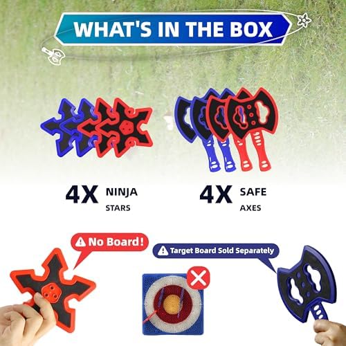 Throwing Axes and Stars 8-Pack Set | for Axe Throwing Game | 4 Axes & 4 Darts | Fits Most Bristle Targets | for Backyard, Camping, Party & Indoor/Outdoor Fun