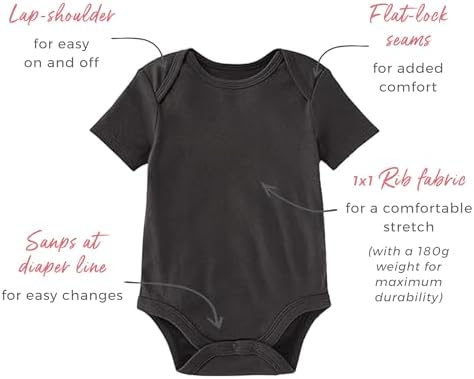 Unisex Short Sleeve Organic Cotton Bodysuits, 3-Pack