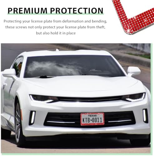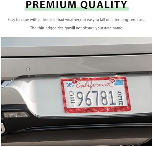 Bling License Plate Frame, Sparkly Bedazzled Auto Tag Holder with Mounting Kit, Handcrafted Crystal Stainless Steel Licence Plate Cover for Women Girls, Car Accessories (Red)