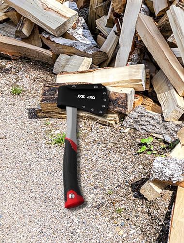 Sponsored Ad - JXE JXO 14.4" Camping Hatchet with Full Tang Forged Construction & Ergonomic Shock Absorbing Grip, Hatchet Axe with Nylon Sheath (Red