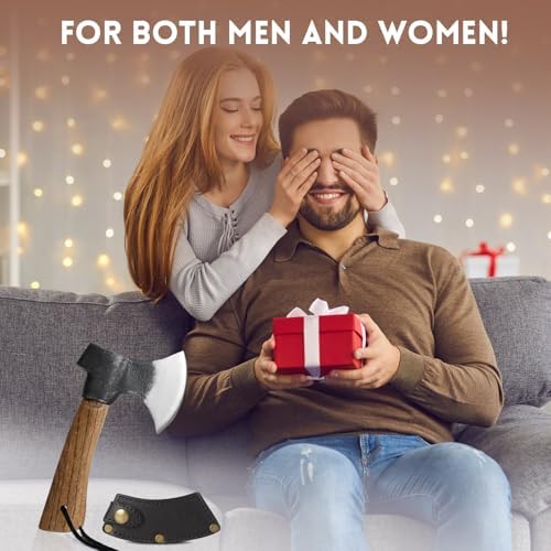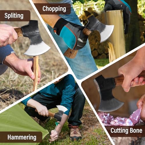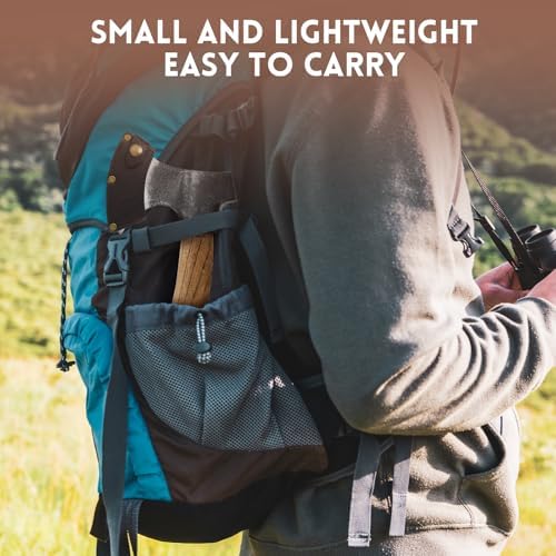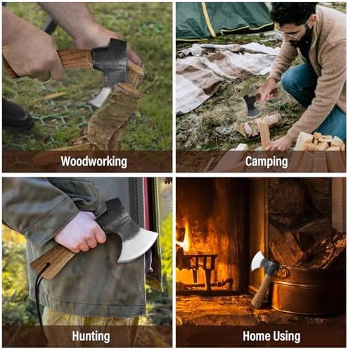 Sponsored Ad - Small Camping Axe with Leather Sheath, 8.46" Backpacking Hatchet with Wooden Handle, Splitting Axe for Jungle, Gardening, Hunting, Survival