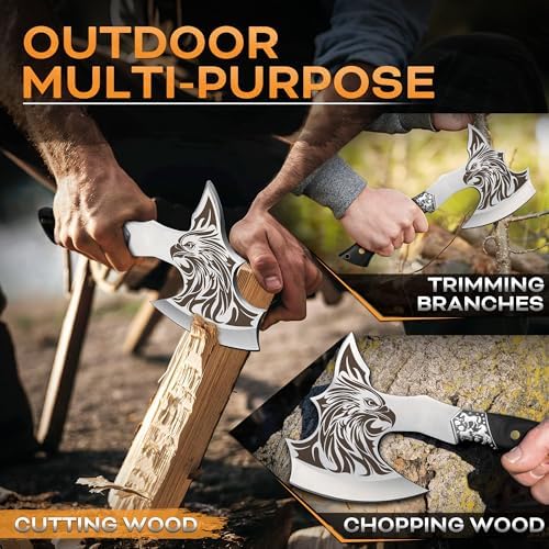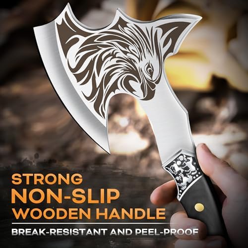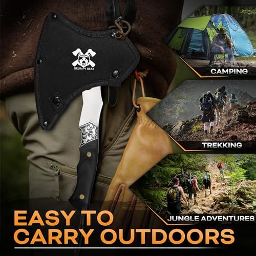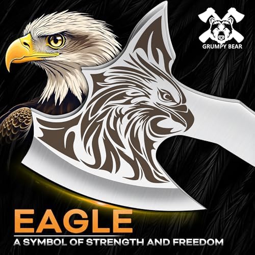 Grumpy Bear Camping Hatchet, Full Tang Outdoor Axe with Decorative Handle, Durable Forged Blade for Hiking, Bushcraft, and Survival (Eagle)