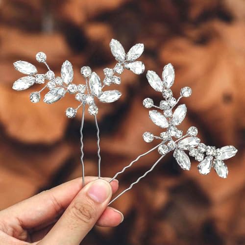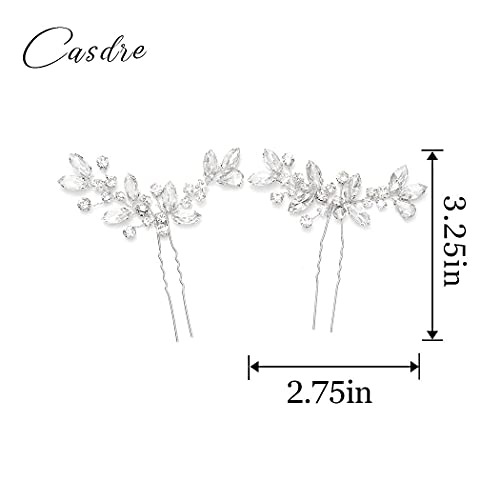 Casdre Crystal Bride Wedding Hair Pins Rhinestone Bridal Hair Pieces Wedding Hair Accessories for Women and Girls (Pack of 2) (A Silver)