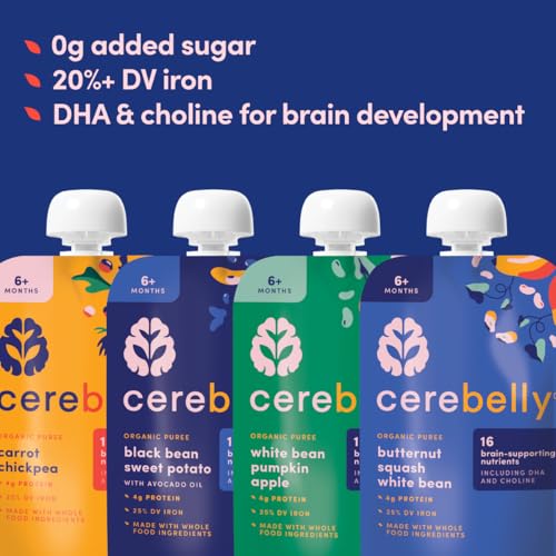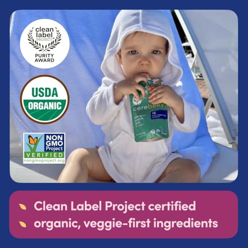 Sponsored Ad - Cerebelly Organic Baby Food Pouches Variety Pack, Veggie & Bean Purees, 16 Nutrients, No Added Sugar, Fiber & Non-GMO, 4oz, 8 Pack