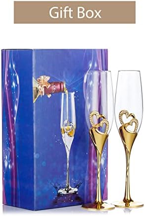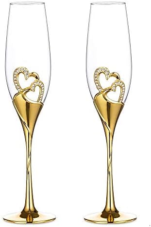 Sponsored Ad - Wedding Champagne Glass Set Gold Toasting Flute Glasses Deluxe Pack of 2 with Rhinestone Rimmed Hearts Decoration for Wedding, Anniversary and Special Occasions
