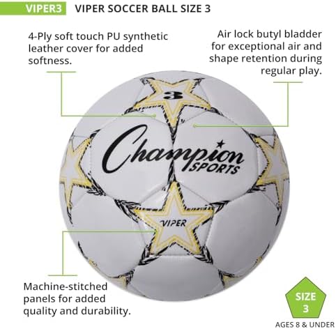 Sponsored Ad - Viper Soccer Ball – Sizes 3, 4, 5 – Soft Touch TPU Cover, Durable Butyl Bladder, Youth & Adult Training Ball for Indoor & Outdoor Play, Multi-Color Design