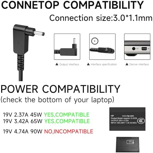 65W Laptop Charger Compatible with Acer ChromeBook 11 13 14 15 R11 N15Q8 N15Q9 N15Q10 CB3 CB5 C720 C720P C731 C738T C740 C810 C730E CB5-571 ADP-45FE F AC Adapter 19V 3.42A
