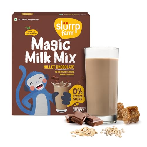 Slurrp Farm Magic Milk Mix Powder | Millet Chocolate Drink for Kids & Adults | No Refined Sugar, High Calcium & Fiber | Tasty, Easy to Digest & Nutritious Beverage | 8.82 Oz (250g)