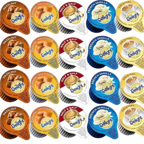 Coffee Creamer Singles Variety Pack – 150 Count, 5 Flavors Half & Half, Hazelnut, French Vanilla, Caramel, Original– Non-Dairy Creamers for Coffee, Tea, Office, Home, Bar & Gifting