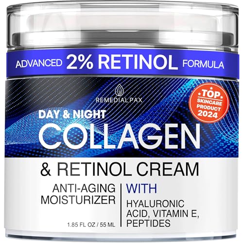 Collagen Face Cream with Retinol & Hyaluronic Acid – Anti Aging Moisturizer for Women & Men, Firming Day & Night Cream for Wrinkles, Hydrating Facial Lotion for All Skin Types