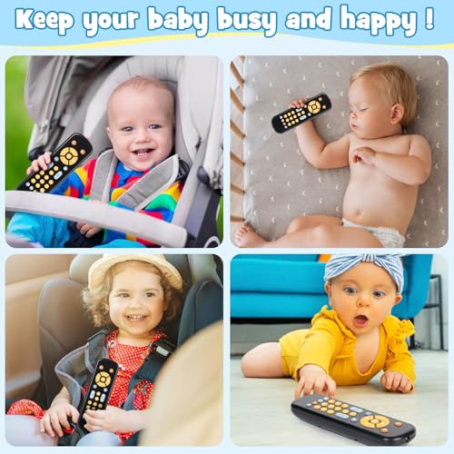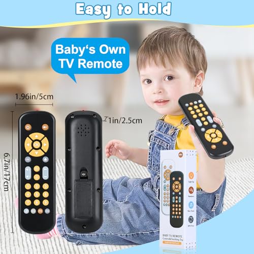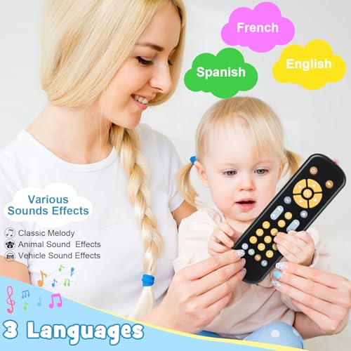 Baby TV Remote Control Toy for 6 Months+, Play Remote Musical Toys with Sound and Light, Early Development Toys with 3 Language English/French/Spanish for Toddlers 6 12 18 Month, BPA Free