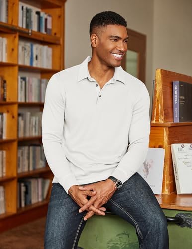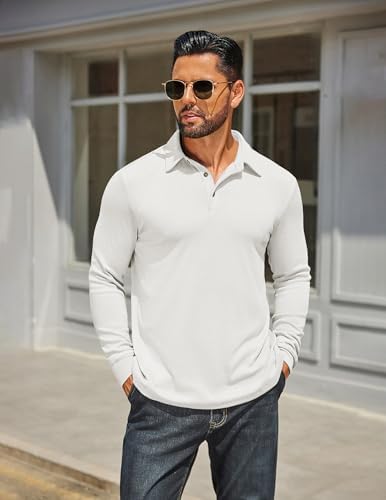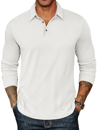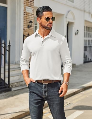 Mens Long Sleeve Polo Shirts Classic Casual Button Polo Tee Lightweight Collared Golf Shirt