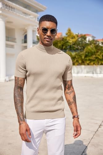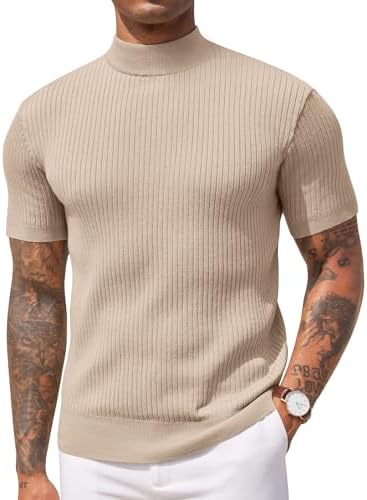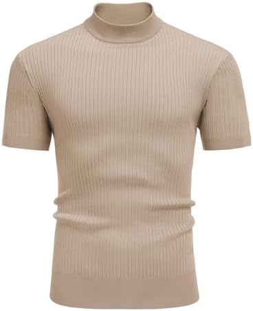 Sponsored Ad - Men's Mock Turtleneck Sweater Short Sleeve Casual Basic Tops Ribbed Knit Pullover Solid Tee