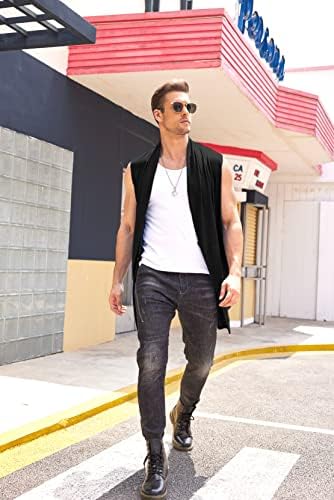 Men's Ruffle Shawl Collar Cardigan Sleeveless Open Front Sleeveless Kimono Vest