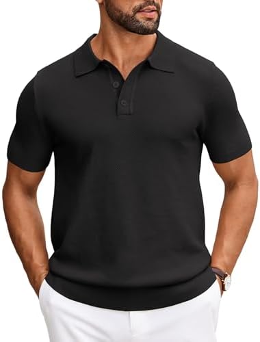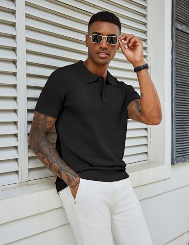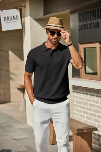 Mens Knit Polo Shirts Short Sleeve Classic Fit Shirts Casual Goft Collared Textured T Shirt
