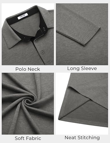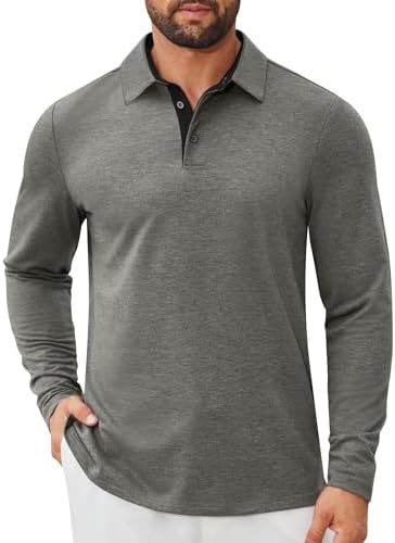 Mens Long Sleeve Polo Shirts Button Casual Tee Collared Work Pullover Shirts