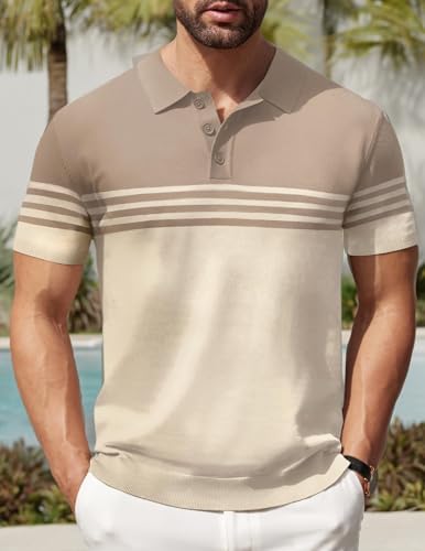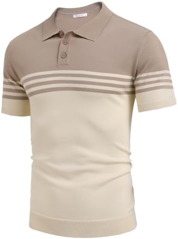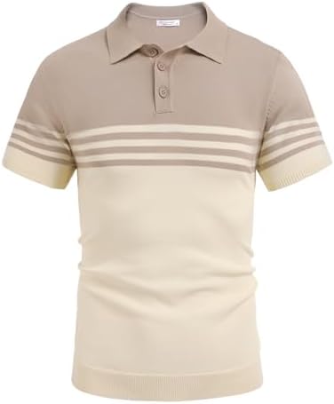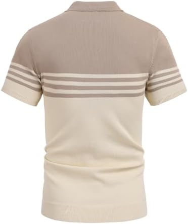 Men's Knit Polo Shirts Short Sleeve Striped Golf Polo Shirts Lightweight Casual Collared T Shirt