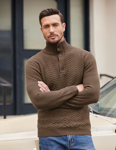 Sponsored Ad - Men Quarter Button Sweater Pullover Cable Knit Henley Mock Neck Sweater