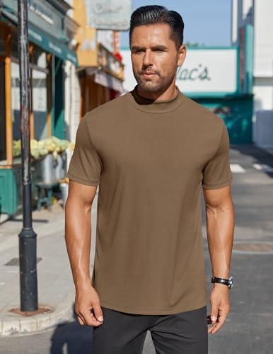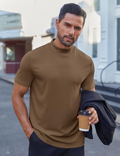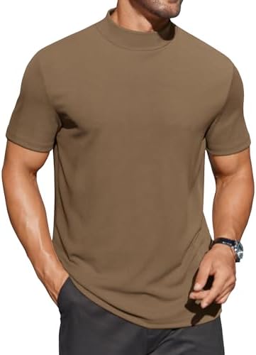 Sponsored Ad - Mens Mock Turtleneck Shirts Short Sleeve Casual Basic T-Shirts Ribbed Solid Pullover Tops