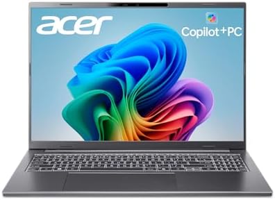 Aspire 16 AI Copilot+ PC | 16" WUXGA 120Hz Multi-Touch Display | Snapdragon X X1-26-100 | NPU: 45 Tops - GPU: Up to 1.7 TFLOPs | 16GB LPDDR5X | 512GB PCIe Gen 4 SSD | Wi-Fi 7 | A16-11MT-X669