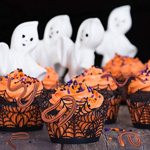 60 Pieces Fake Earthworm Faux Trick Toy Plastic Soft Stretchy Realistic Earthworms Simulated Fishing Lures Baits for Halloween Decoration