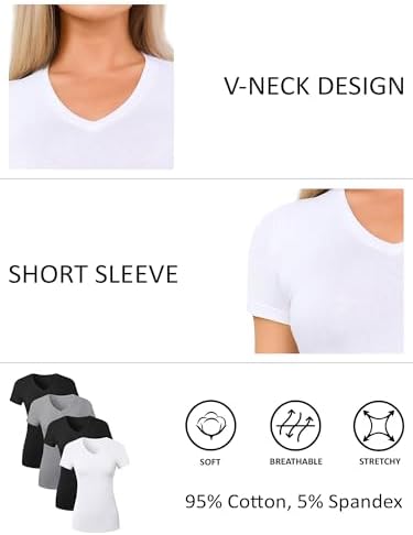 Sponsored Ad - Cotton V Neck T Shirts for Women Short Sleeve Tshirt Basic Tees Vneck Tshirts Womens Tops Undershirt Multipack