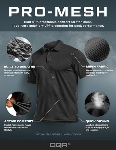 Men's Polo Shirt, Long Sleeve Tactical Shirts, Outdoor UPF 50+ Pique Shirt, Dry Fit Lightweight Golf Shirts