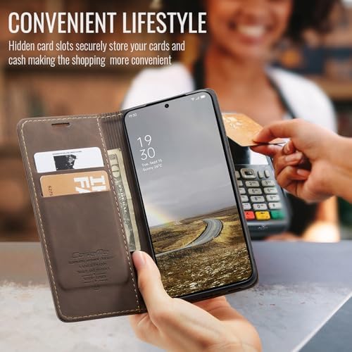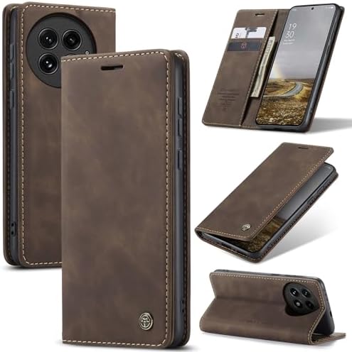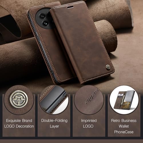 for OnePlus 13 Case, Flip Wallet Leather Case with Card Holder Magnetic Closure Shockproof Kickstand Protective Phone Cases Cover for OnePlus 13, Coffee