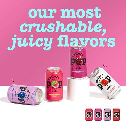 Culture Pop Soda, Jazzy & Juicy Variety Pack, Probiotic Low Sugar Soda, Sparkling Juice Alternative, Non-GMO, Kosher, Gluten-Free, No Stevia (12pk)