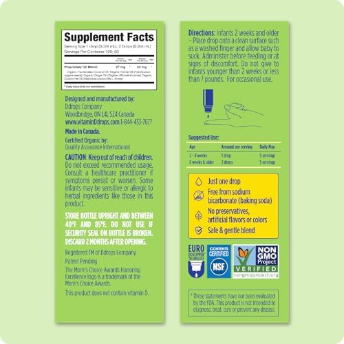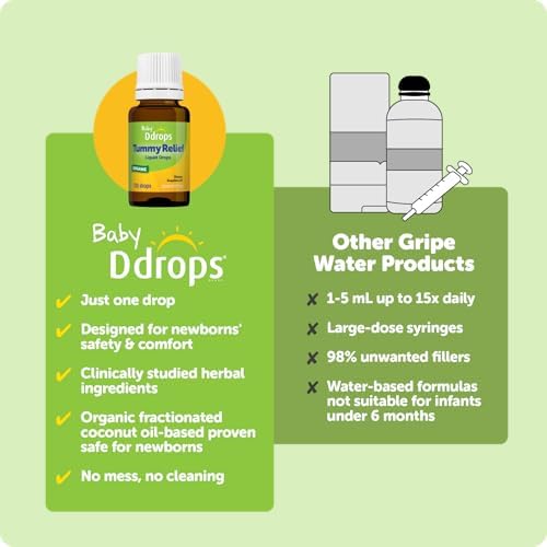 Sponsored Ad - Ddrops Baby Tummy Relief Liquid Drops, Organic Gripe Water for Newborns, Relief from Gas, Colic, Fussiness and Hiccups, Just One Drop, Herbal Ingredients, 120 Drops