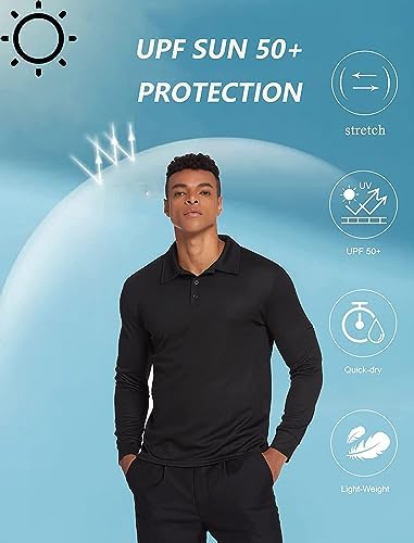 Sponsored Ad - Men's Polo Shirts Long Sleeve Golf Polo Shirts for Men Quick Dry UPF 50+ Sun Protection Polos Casual Collared Shirts