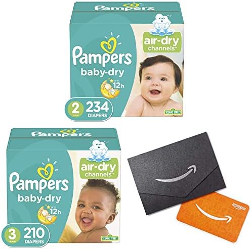 Diapers Size 2, 234 Count - Pampers Baby Dry Disposable Baby Diapers with Diapers Size 3, 210 Count and Amazon.com Gift Card in a Mini Envelope