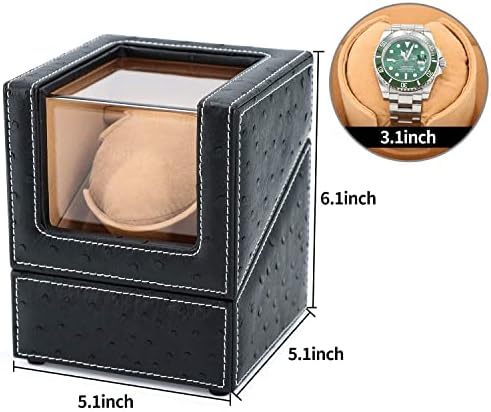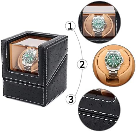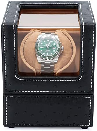 DRIKLUX Automatic Single Watch Winder for Rolex and Other Luxury Watches - Automatic Winder with Quiet Motor, Premium Black Ostrich Leather Exterior and Soft Flexible Watch Pillows of Camel Velvet