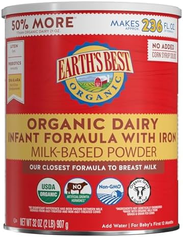Organic Baby Formula for Babies 0-12 Months, Powdered Dairy Infant Formula with Iron, Omega-3 DHA, and Omega-6 ARA, 32 oz Formula Container