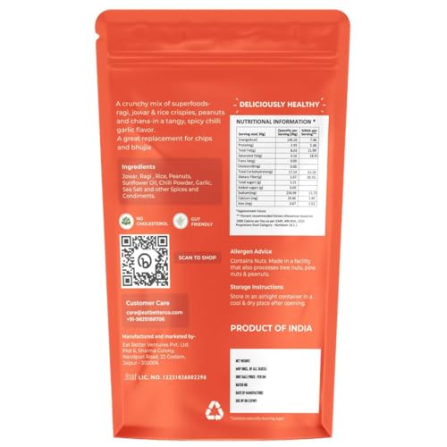 Eat Better Co – Millet Namkeen – Chilli Garlic – Chatpata, Healthy Namkeen Snacks – Roasted, Not Fried | No Palm Oil | Healthy Replacement of Chips & Bhujia (100 gm)